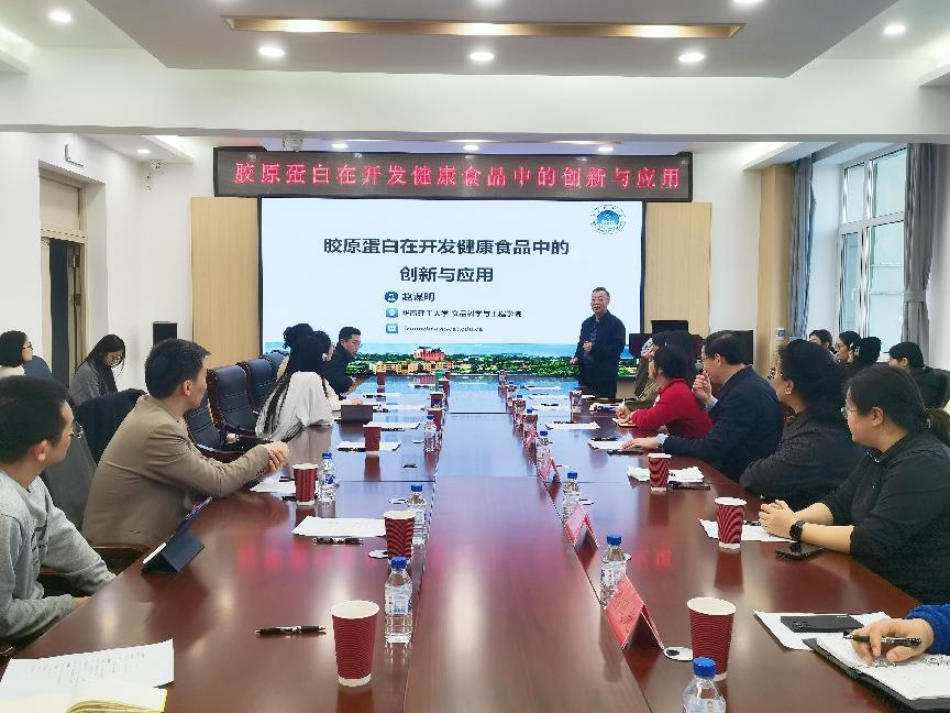 在互动环节中,赵教授与现场师生就当前研究热点、技术挑战以及未来应用前景进行了深入的讨论与交流。此次报告给予了大家溯源与原料选择、产业化过程中的关键指标和靶向性与机制研究方面的宝贵启发,拓宽了大家在食品科学与工程领域的学术视野以及产业化实践经验,为胶原蛋白开发、创新应用提供了体系化研究、成果转化及产业化示范。